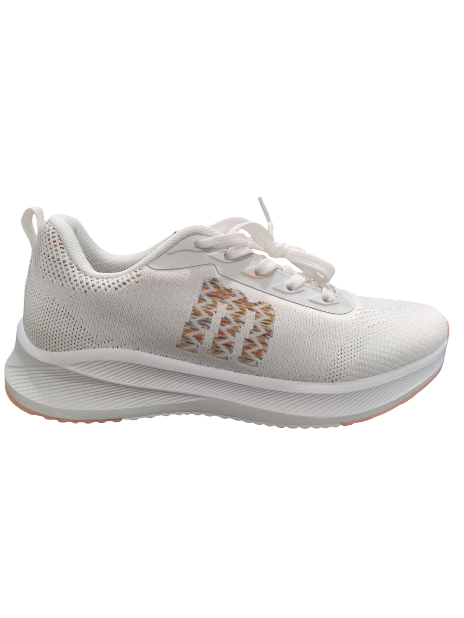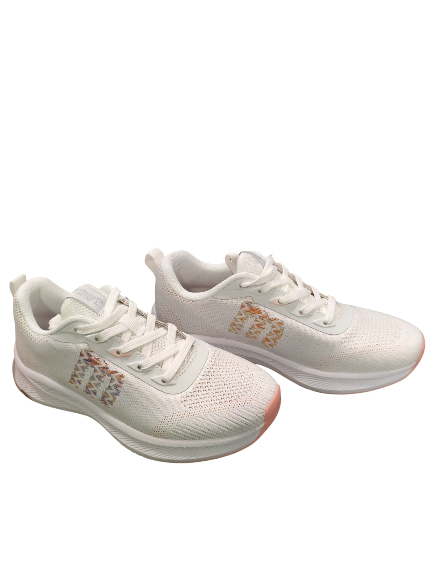 Zapatillas blancas Somo para mujer de Mustang. Estas zapatillas deportivas destacan por ser blancas en su totalidad e incluyen su detalle del logo bordado y multicolor. Tienen una suela gruesa, ofreciendo mayor comodidad. Su tejido, además, es transpirable. ¡Somos de Mustang es la zapatilla perfecta!